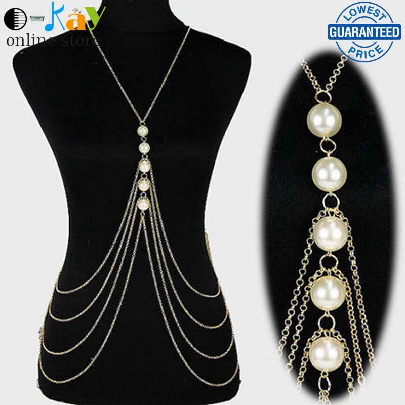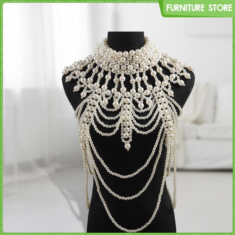 [Wishshopeelxj] Pearl Body Chain Fashion Shoulder Necklace Bra Classic Jewelry for Bridal Wedding Dress Party Causal Wear Bikini Swimsuit