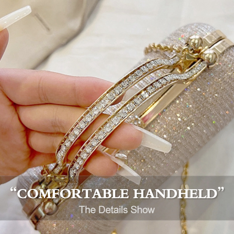 Elegant Rhinestone-Embellished Evening Clutch Bag Perfect For Weddings Proms And Formal Events Versatile Crossbody Bag With -Toned Hardware And Sparkling
