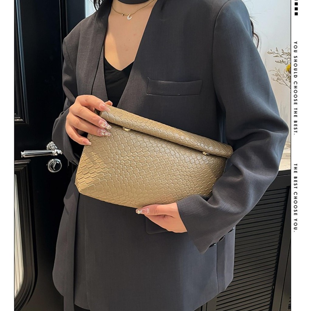 2025 New Stone Pattern Handbag Solid Color High Texture Casual Large Capacity Envelope Bag