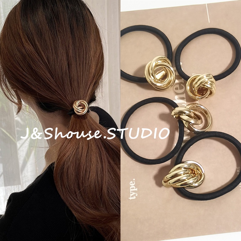 KF563 Korean style simple golden metal braid hair ties rubber band hair accessories