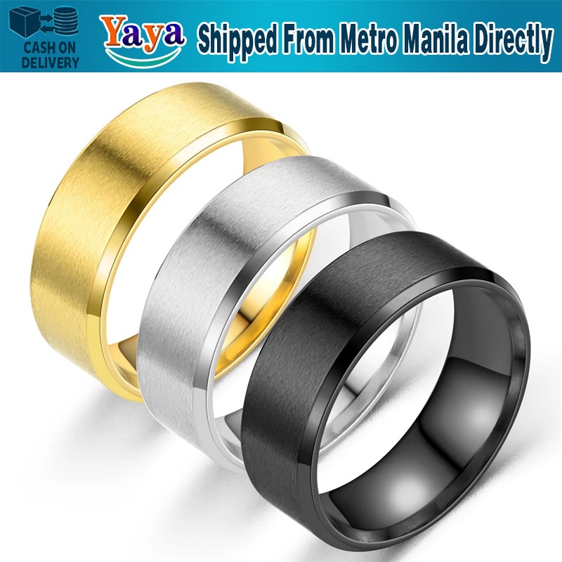 【In Stock】Cool Men's Titanium Ring Simple Silver Black Gold Polishing Frosted Ring