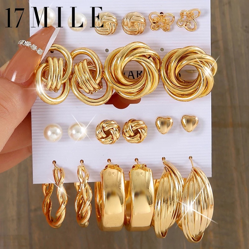 Hypoallergenic Luxury Gold Hoop Earrings Set Piercing Ear Stud Women Accessories Jewelry